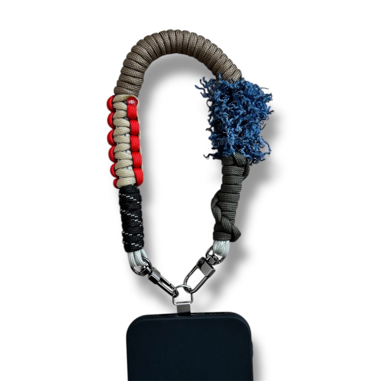 【0122】パラコード ハンドストラップ デニム レッド ベージュ ブラウン